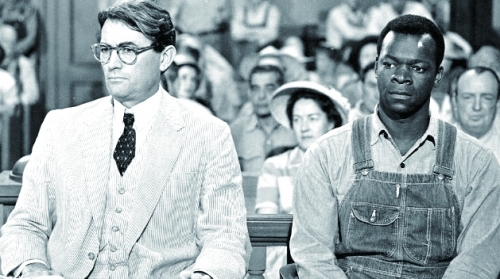 在影视剧等衍生作品渲染下,芬奇律师(左)等角色成了一代美国人的偶像(图为《杀死一只知更鸟》1962年版电影剧照)。 |