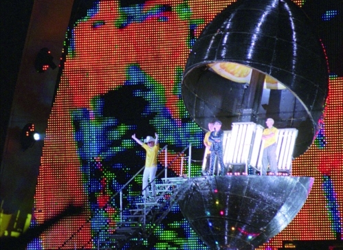 1997年,U2乐队主唱兼吉他手保罗从柠檬形迪斯科球中走出。 |