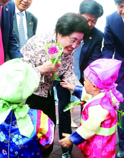 2015年8月8日消息(拍摄时间不详),韩国前总统金大中的遗孀李姬镐访问朝鲜的照片被媒体公布,访朝期间,李姬镐访问了平壤产院、儿童医院、孤儿院、爱育院、妙香山、国际亲善博览馆和佛教寺院普贤寺等。据韩国《朝鲜日报》8月10日报道,李姬镐此访受朝鲜最高领导人金正恩邀请,但最终未能与金正恩会面。