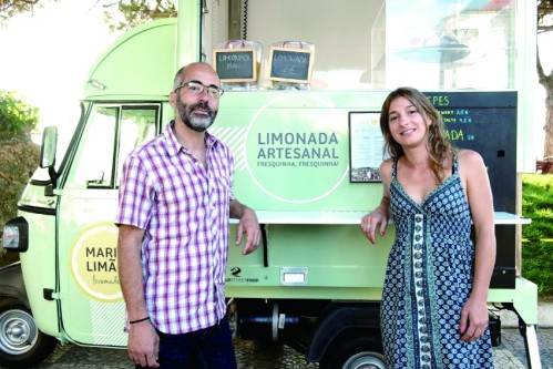 莫妮卡·桑托斯和若昂·莱斯在他们的小吃车前。 |