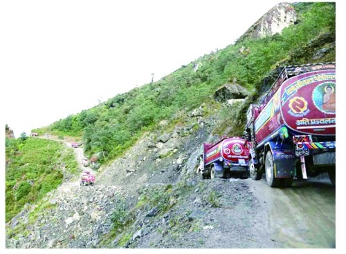 尼泊尔油罐车前往中国吉隆口岸,准备运回中方援助的汽油。 |