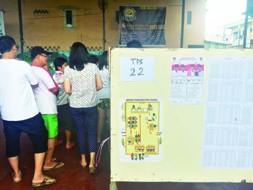 登记在册的选民有近200万人。投票日这天,棉兰市16个镇设立了3024个投票站。22号、35号、36号投票点设在棉兰郊区Metal村一个篮球场里。从上午7点半开始,这3个投票点迎来了陆续前来投票的选民。