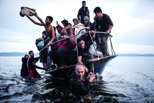 一般新闻类组照一等奖:《欧洲难民危机》 2015年11月16日,希腊莱斯博斯岛,难民乘船抵达斯卡拉村庄。 摄影:Sergey Ponomarev/俄罗斯 |