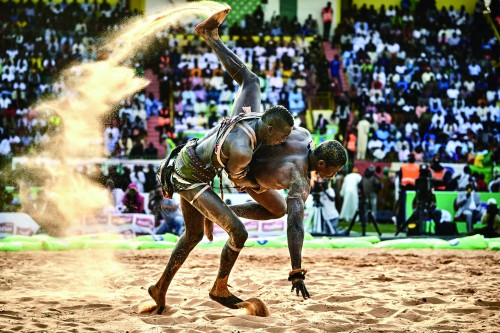 体育类组照二等奖:《塞内加尔的摔跤选手》 2015年8月11日,塞内加尔的摔跤比赛现场。 在塞内加尔,摔跤堪称国术,也是一项有利可图的生意,明星选手可获得丰厚回报。进行摔跤比赛的日子仿佛一个节日,选手们一起跳舞唱歌,进行摔跤表演。 摄影:Christian Bobst/瑞士 |
