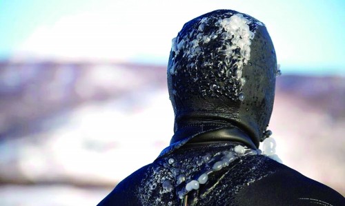 然而,冬日之海的纯净和庄严,还是让他无可自拔地爱上了它。“我们通常在日出之前就下海了。这真是令人难以置信,由于气温低,空气似水晶般清澈,太阳从海平面上升起,我们身上的黑色潜水衣与岸上洁白的积雪形成了鲜明对比。”他说。