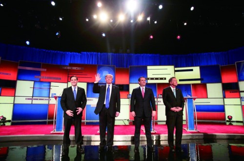 3月3日,美国底特律,共和党候选人马克罗·鲁比奥、唐纳德·特朗普、约翰·卡西奇和泰德·克鲁兹参加辩论。 |
