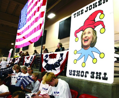 2月22日,美国拉斯韦加斯,特朗普的支持者将希拉里做成了小丑。 |