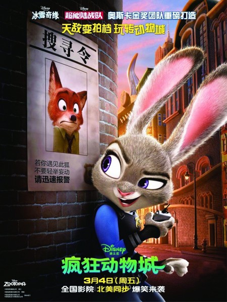 3月4日,迪士尼影业出品的3D动画片《疯狂动物城》在中国和北美同步上映。凭借峰回路转的情节、天马行空的笑料和精美的视觉效果,这部被认为有望问鼎明年奥斯卡动画长片奖的电影轻松拿下迪士尼原创动画首日最高票房,在中国市场也是票房口碑双丰收。据美国雅虎新闻网报道,《疯狂动物城》在中国上映3天便收获票房近亿元。在豆瓣网上,该片评分更是高达9.4分。