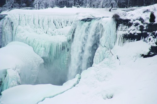 冬季的尼亚加拉大瀑布,就像是大雪山上下来的剑客,举手抬足间,都裹挟着一道凛冽的风霜。而远远传来的雷鸣般的轰响,恍如勇士们吹响了号角,挥舞着重剑,呼啸着开始冲锋。冲天而起的水雾仿佛万马奔腾时扬起的烟尘,令人刹那间生出宛如置身于古战场的错觉。茫然四顾,依稀间,似乎可以感受到铁与血的情怀。
