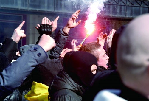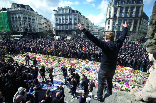 3月27日,右翼球迷喊着民族主义和反移民口号,“占领”了人们在布鲁塞尔悼念恐袭遇难者的广场。 |