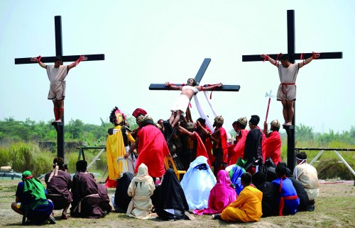 菲律宾 3月25日,菲律宾马尼拉,在耶稣受难日,一些教徒将自己绑在十字架上。在天主教徒聚居的社区,受难日的游行活动也很常见。 |