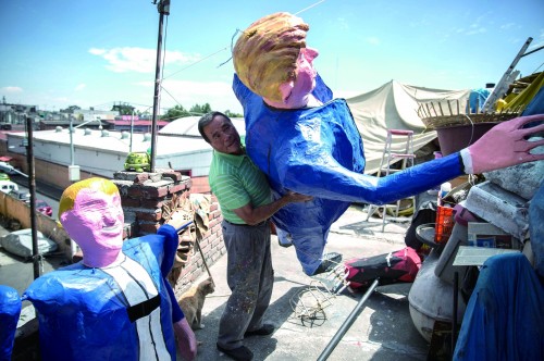 墨西哥 3月24日,墨西哥墨西哥城,墨西哥手工艺人菲利普·林纳瑞斯(Felipe Linares)制作美国共和党候选人唐纳德·特朗普的纸质人偶,这些人偶在3月26日的圣周庆祝活动上被烧毁。 据法新社报道,墨西哥人通常在复活节前夕的“焚烧犹大”仪式中烧毁恶魔像,以及他们讨厌的公众人物。今年在墨西哥城的拉麦塞德社区,民众将特朗普选为恶灵的代表。 特朗普曾在演说中称墨西哥人都是毒贩、强奸犯,犯下各种罪行。他表示,将在美国和墨西哥边境建一座高墙,将墨西哥人阻隔在外,并要墨西哥为此埋单。他的言论在墨西哥引发众怒。 |
