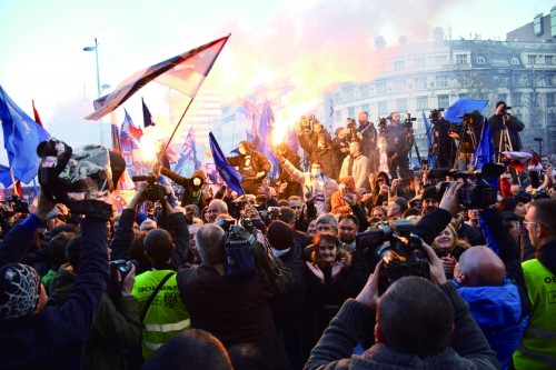 塞尔维亚 3月24日,塞尔维亚贝尔格莱德,民众参加抗议游行。当日,联合国前南斯拉夫问题国际刑事法庭判处现年70岁的曾经的波黑塞族共和国总统卡拉季奇种族灭绝罪成立,刑期为40年。 据法新社报道,卡拉季奇面临11项指控,包括种族灭绝、谋杀、迫害等。他因1995年的斯雷布雷尼察屠杀被控犯下种族灭绝罪。卡拉季奇此前表示自己无罪。联合国官员称,此案的裁决结果表明无人可以凌驾于法律之上。卡拉季奇的律师称,他的委托人将提起上诉。 |