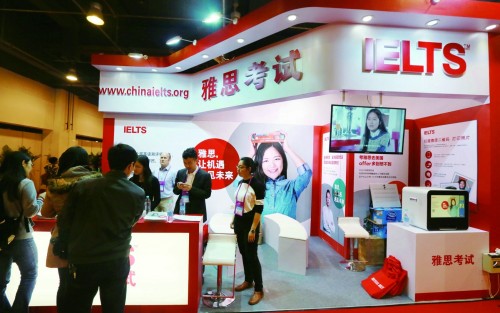 2015年10月24日, 北京中国国际教育展上,IELTS雅思考试的展台。 |