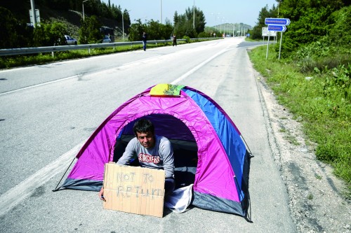 4月4日,难民在希腊与马其顿边境阻路示威,抗议遣返移民协议。 |