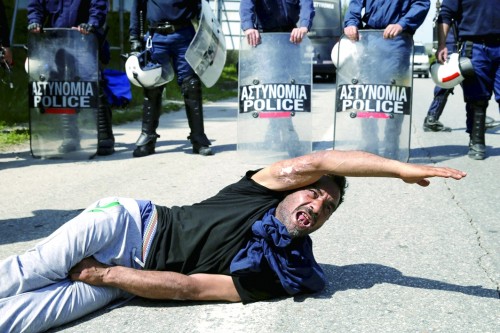 随着4月4日“大限”的临近,莱斯沃斯岛上的难民开始组织小规模示威,抗议可能被遣返的命运。数百人撕开铁丝网走向港口,要求继续北上,前往北欧。甚至有人在希腊与马其顿的边境自焚,以抗议这一协议。