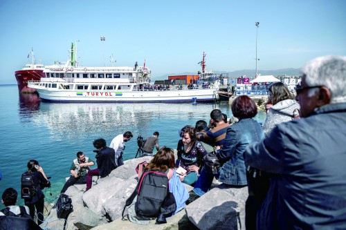 4月4日黎明时分,202名即将被遣送的难民和开往土耳其的渡轮准备就绪。为了确保安全,欧盟出动了约700名边境管理局官员和50名防暴警察。大约同一时间,一架载有首批16名叙利亚难民的飞机降落在德国汉诺威。