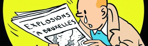 布鲁塞尔恐袭后,描绘丁丁为伤亡者流泪的漫画在社交网络上传播。 |