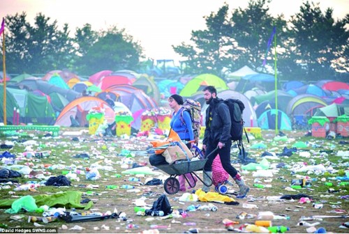 轻轻的他们都走了,不带走一地垃圾。2015年的格拉斯顿伯里音乐节制造了1650吨垃圾。 |