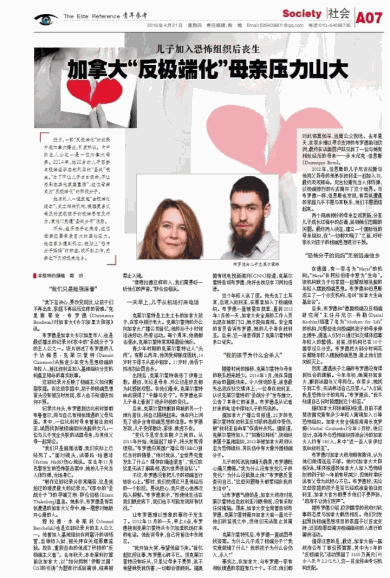 然而,遭遇丧子之痛的布罗德没有得到社会的理解。今年年初,她离开加拿大,搬到法国与父母同住。在家乡,她找不到工作,无法养活自己及家人。“人们说我是恐怖分子的妈妈。”布罗德说,“我不知道自己何时能摆脱这个标签。”