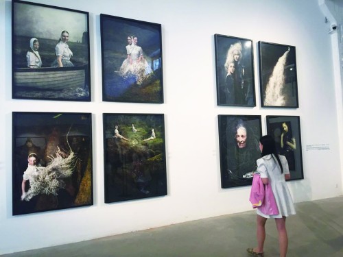 一位参观者在“气象笔记”图片展的艺术作品前驻足 陈婧/摄