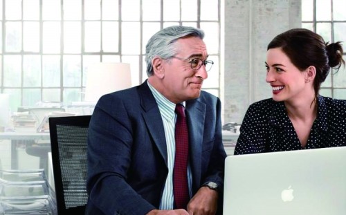 好莱坞电影《实习生》中,奥斯卡影帝罗伯特·德尼罗(左)扮演70岁高龄的实习生。