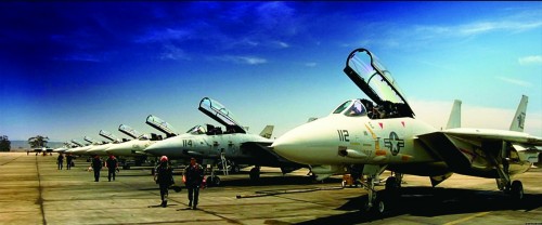 经过两年筹备,1985年春,《壮志凌云》剧组在美国加州米拉马海军航空站安营扎寨。这里是美国海军战斗机武器学校所在地,也是F-14部队的大本营。