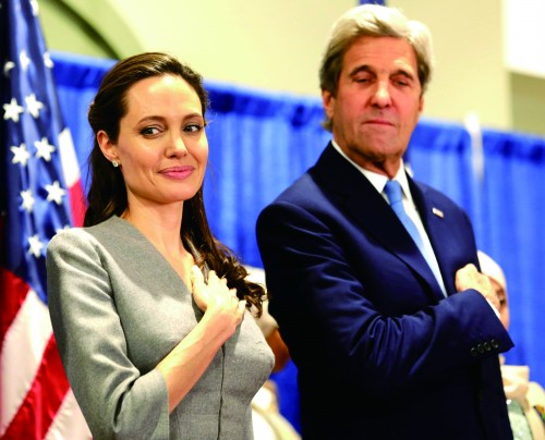当地时间6月20日,美国弗吉尼亚州斯特林,世界难民日当天,美国国务卿克里和联合国难民署亲善大使安吉丽娜·朱莉参加在穆斯林社区举办的招待会。