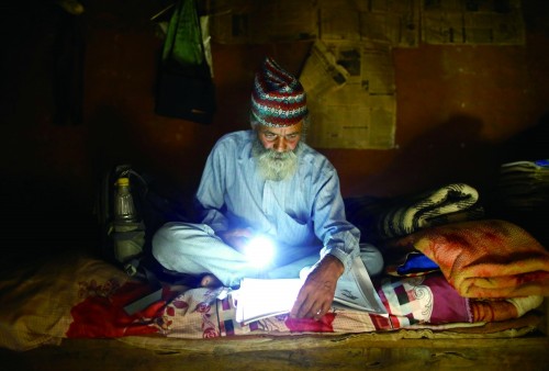 就算停电的时候,杜尔迦·卡米也没有放弃学习,坐在床上用手电筒坚持复习功课。
