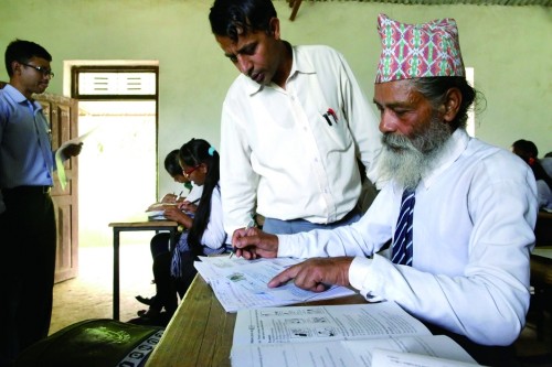 中学毕业考试前,需要填写申请单,杜尔迦·卡米在老师的帮助下顺利完成了报名。