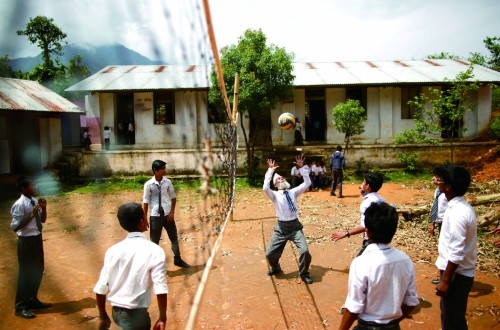 下课时间,杜尔迦·卡米积极地和同学一起打球,排球场上的他看起来并不像68岁的样子。