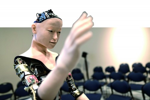 Alter长了一张“人脸”,更为“恐怖”的是,借助搭载的神经网络系统,它可以冷不丁地动一下。Alter全身搭载了42个气压传动装置,其大脑则是一台“中枢模式发生器”(CPG)。CPG中的神经网络可以复制神经元,以便机器人能发展出自己特有的动作模式。虽然Alter动起来跟人的差别比较大,但你会觉得这家伙是活生生的。