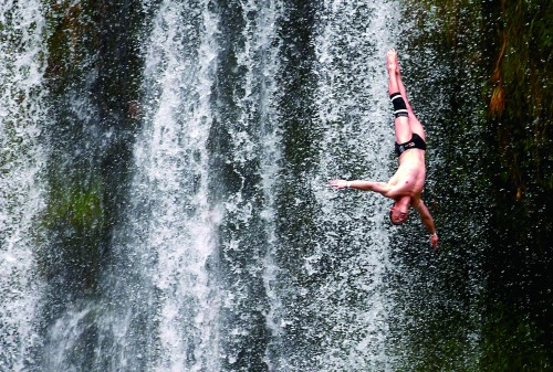 当地时间8月6日,“国际瀑布跳水大赛”在波黑古城亚伊策举办。