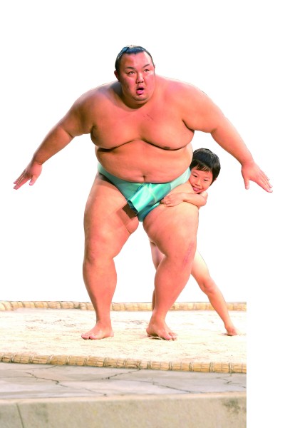 当地时间8月28日,一场相扑文化宣传活动在日本东京某商场中举行。顶级相扑手现身表演,并与小朋友们展开互动。