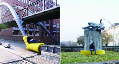 在美国,建筑设计机构“旧金山钢筋”正在就安保对公共空间的影响展开辩论;在德国,设计师奥利弗·绍(Oliver Schau)用黄色的排水管道在城市公共区域打造“游击休息区”;在加拿大,独立慈善机构“Rain City”为帮助无家可归者,在城市中安装带有屋顶的长椅。