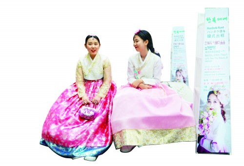 图为出租韩服的摊位。游客穿韩服可以免费参观景福宫等景点。