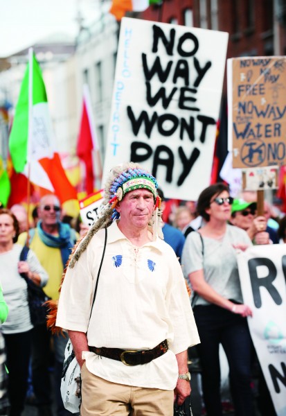 据《爱尔兰时报》报道,当地时间9月17日,数千民众走上都柏林街头游行,抗议政府征收水费。