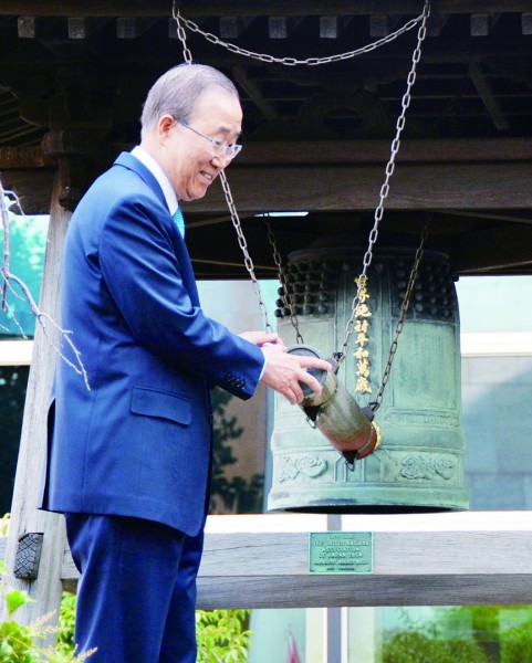 联合国秘书长潘基文9月17日在纽约联合国总部敲响和平钟,纪念于21日到来的国际和平日。