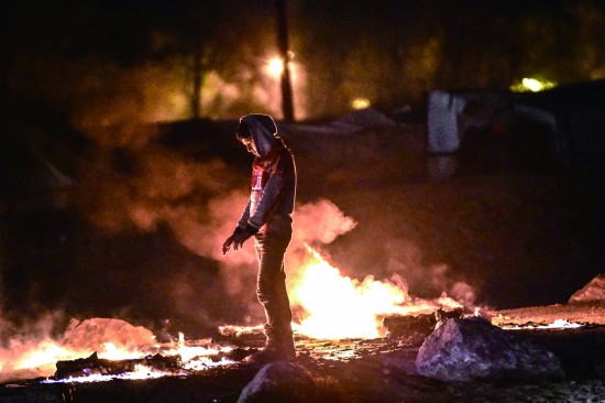 10月23日,法国加莱拆除“丛林”难民营前夜,难民与警方发生冲突。本版图片来源CFP