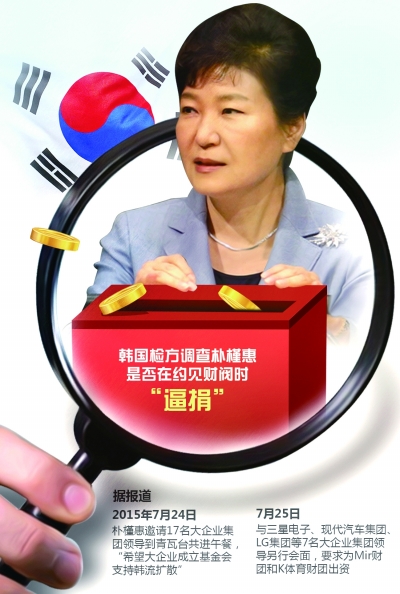 11月7日,韩国检方特别调查本部传讯全国经济人联合会的两名高管,调查总统朴槿惠去年在青瓦台与7名大企业集团领导闭门面谈时,是否要求出资设立由朴槿惠亲信崔顺实操控的两个基金会。▋图片来源 CFP