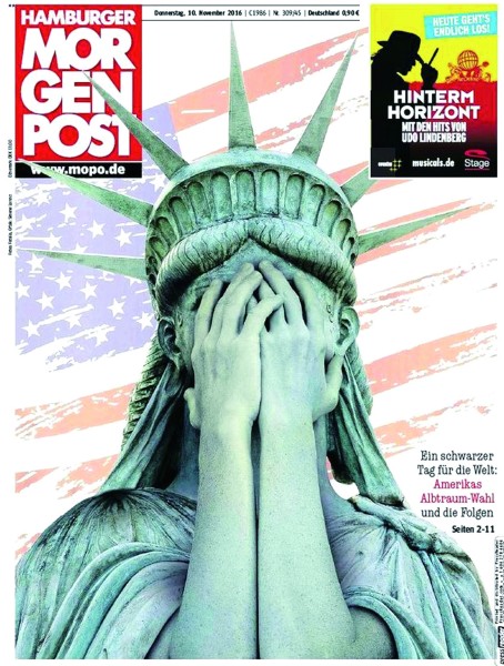 该报认为,特朗普的胜利凸显了“震惊全国的、广泛的政治分歧”。《洛杉矶时报》则称,特朗普和希拉里的支持者仿佛来自两个截然不同的美国,他们之间充满了谎言、怨愤和不信任。