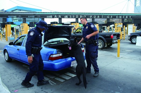 当地时间10月14日,美国加州圣伊西德罗市,美国海关边检人员在过境处检查进入美国的车辆。