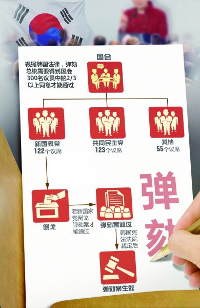 11月20日,在野党8名高层在国会召开紧急会议并达成协议,认为“总统犯罪事实明确而重大”,构成弹劾理由,呼吁国会和三大在野党讨论弹劾议程。最大在野党共同民主党次日召开议员大会,就“争取弹劾总统及设立所需工作机构”达成一致。据英国广播公司(BBC)报道,除了叛乱或叛国罪,韩国宪法不允许在任总统被起诉,而朴槿惠还有15个月的任期。在双方对峙的情况下,让她下台的唯一办法似乎只有宪法规定的弹劾,但弹劾总统也非易事。