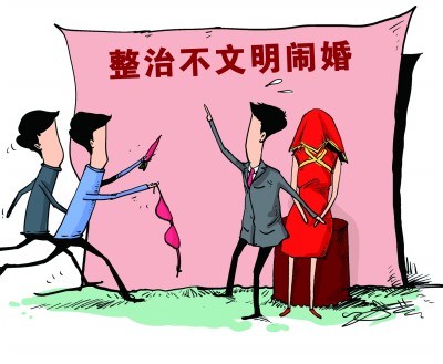 在许多情况下,这种恶搞会超过象征性的界限。在公共场合,性对大多数中国人来说依然是禁忌,但婚礼似乎成了一些男性露骨表达性渴望的合法场合,这有时会导致性骚扰。英国《每日邮报》援引中国网络上一组闹洞房的视频截图指出,在中国的一次婚礼上,一些伴郎试图脱掉伴娘的内衣,而那位伴娘并没有得到帮助。