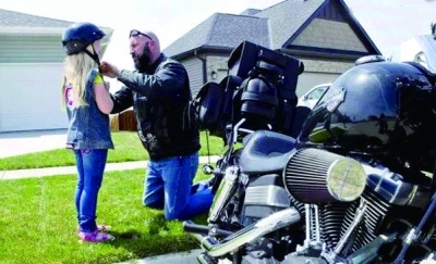 他们是“反虐童机车帮”(Bikers Against Child Abuse,下文简称“机车帮”)的摩托车手,有男有女,有老有少,清一色的“不良”打扮——硕大的金属饰物、夸张的墨镜、花哨的皮衣,加上胯下轰鸣的重型摩托车,浩浩荡荡地风驰而过,外人很难把他们和“儿童守护神”联系起来。