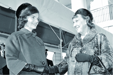 杰奎琳·肯尼迪(左)与玛米·艾森豪威尔在白宫会面。