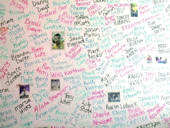 在俄亥俄州派克顿戒毒中心的墙上,密密麻麻地写着因吸毒死亡的人的名字。