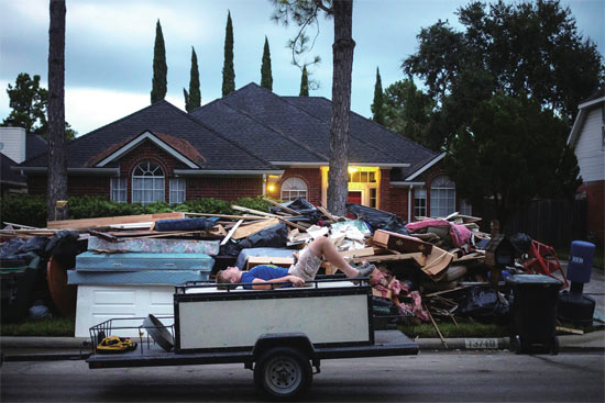 9月4日,“哈维”过后,清理残局的休斯敦民众抽空小憩 。图片来源CFP