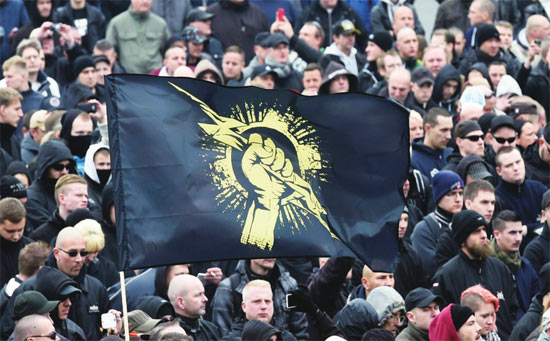 2014年11月15日,数千名足球流氓和新纳粹分子在德国汉诺威游行并高喊排外口号,引发骚乱。图片来源CFP