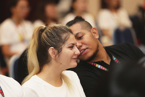 “亚太青年领导力与创新创业论坛”上的青年代表在交流。本报记者 李建泉摄